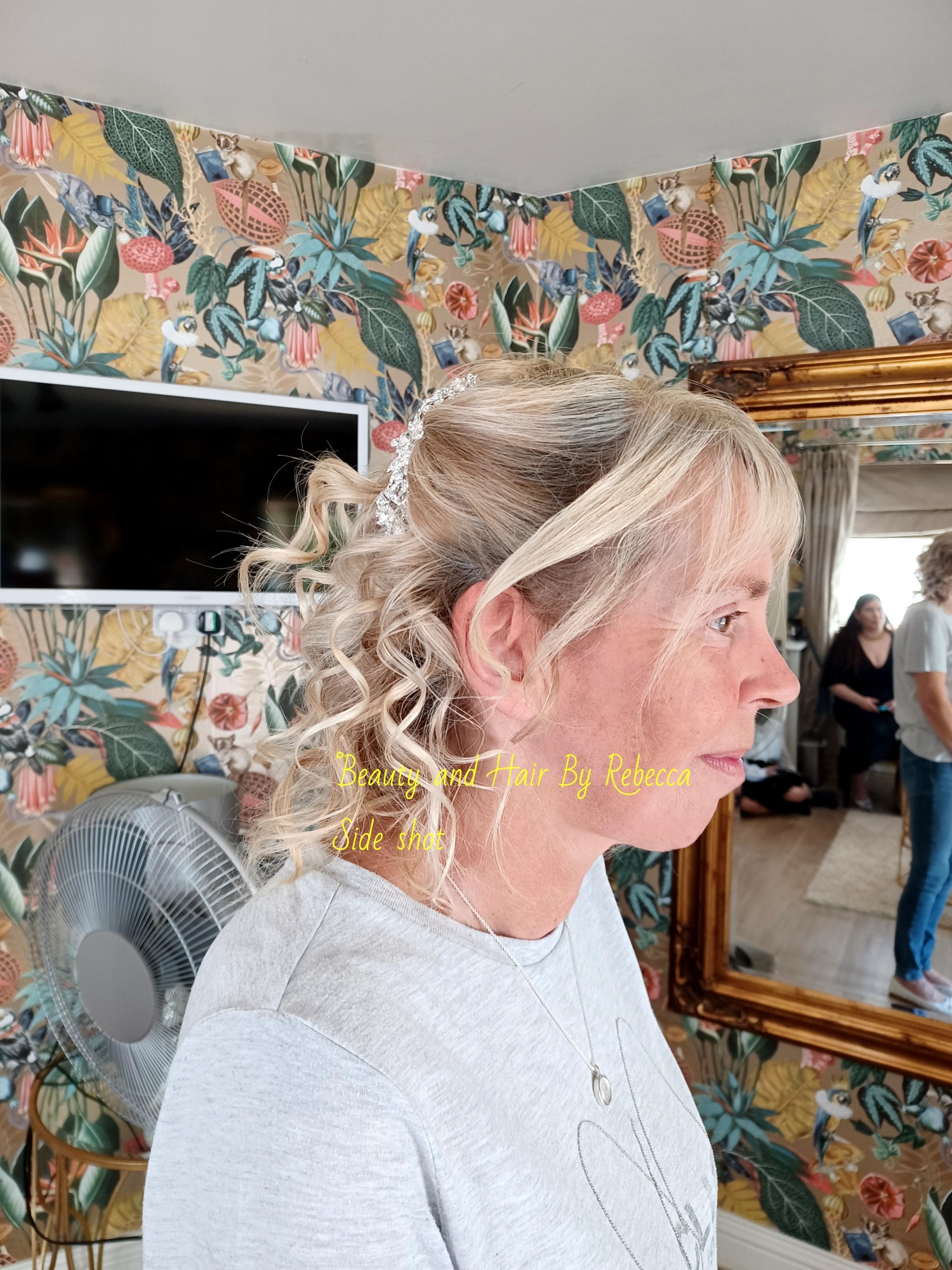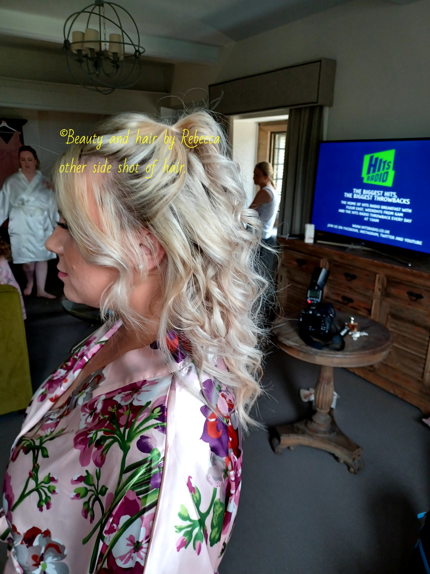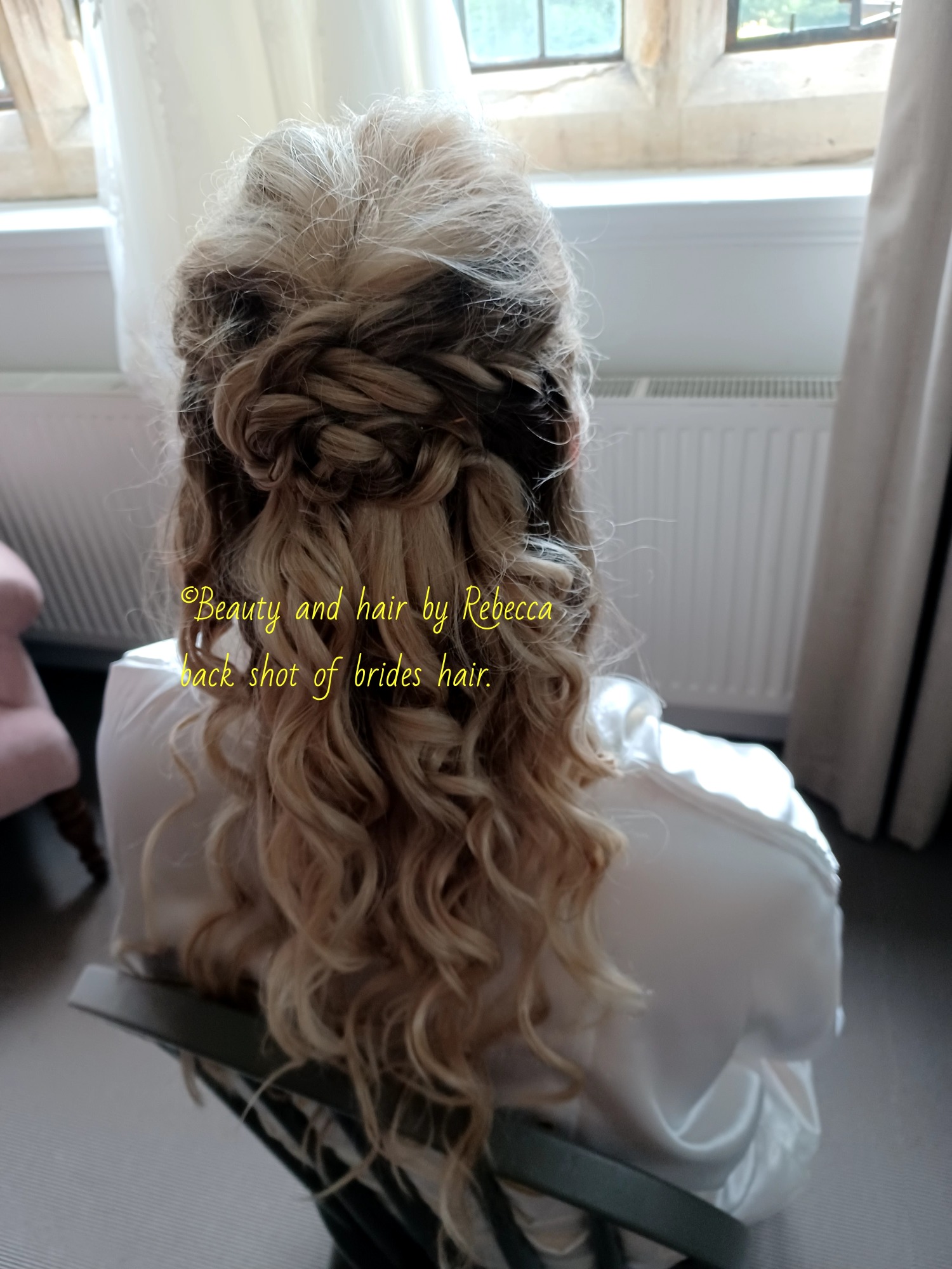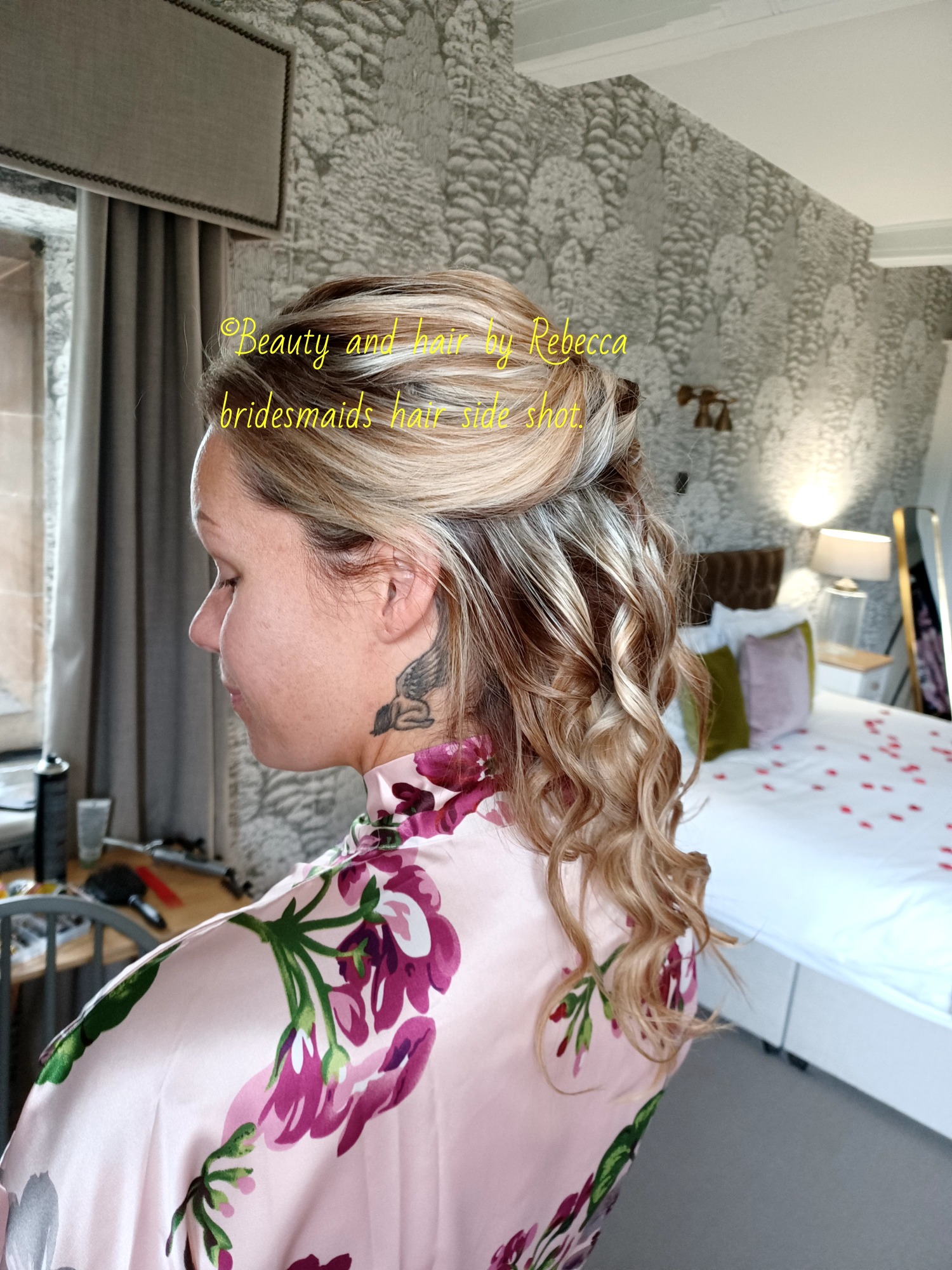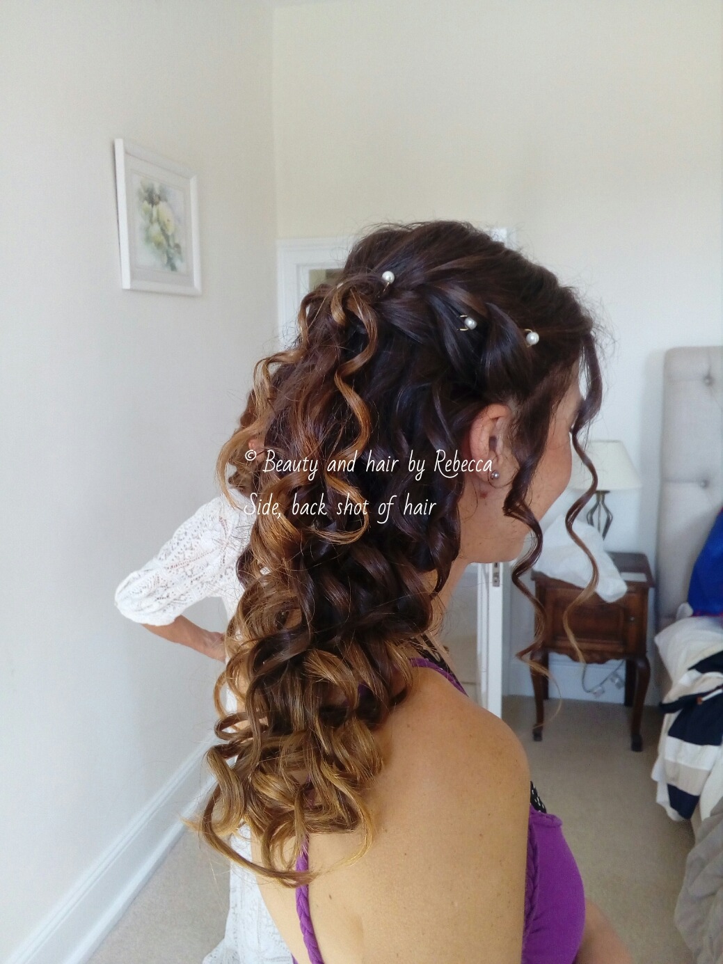 Bridesmaid with mix of curls and straight hair